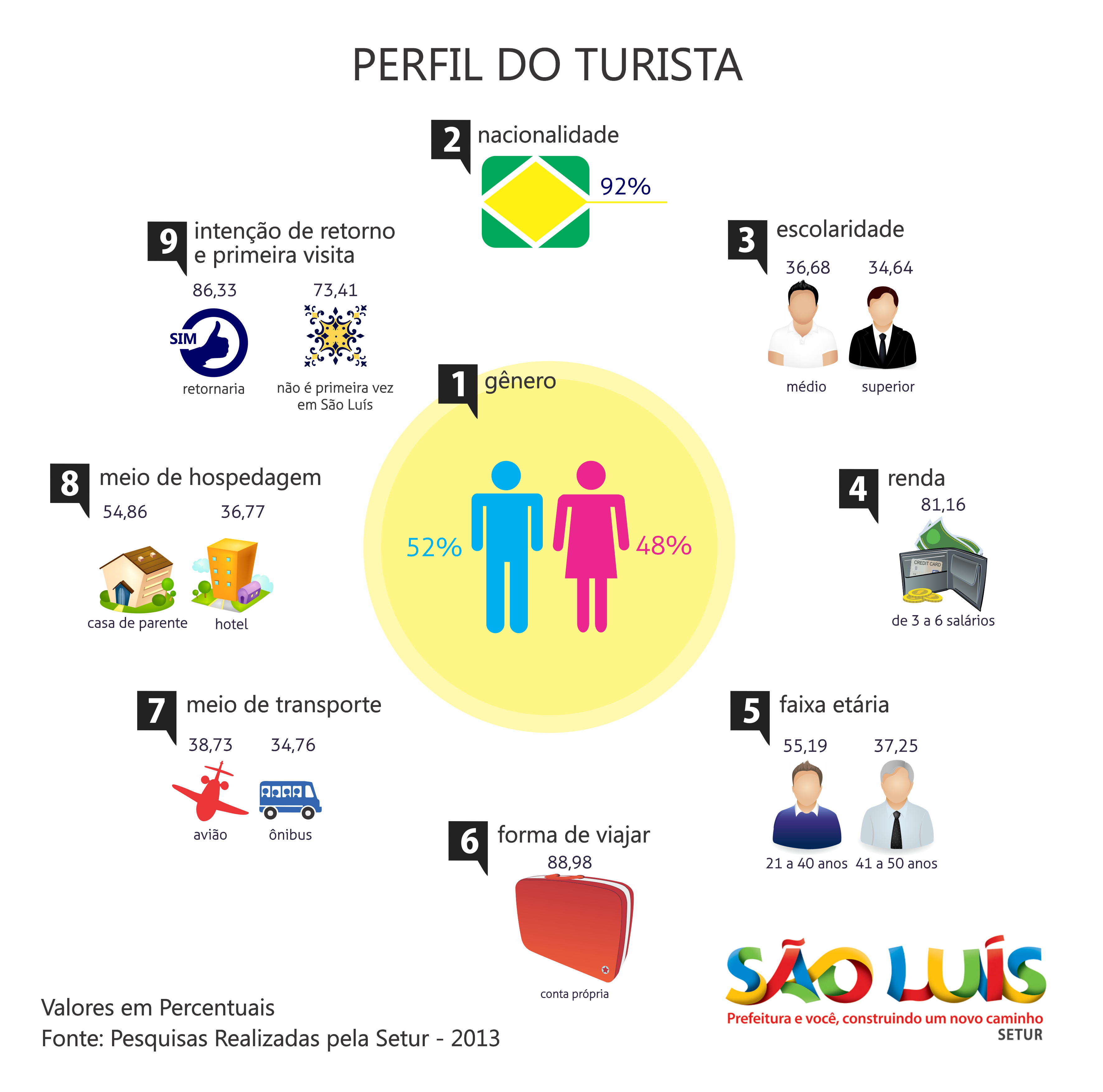 Durante o evento, a Setur apresentou a pesquisa com o perfil dos turistas que visitam São Luís. A tabulação de todas as variáveis relacionadas aos turistas, organizada pela Coordenação de Análise Mercadológica da secretaria, trouxe informações sobre produtos e serviços mais utilizados, gasto médio, faixa etária e tempo de permanência na cidade, dentre outros.