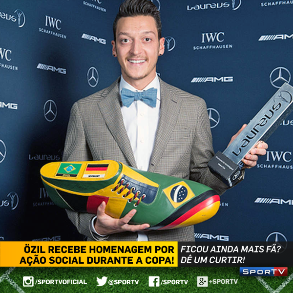 O meia do Arsenal e da seleção da Alemanha recebeu ontem o troféu Laureus pela ação social prestada durante a Copa do Mundo do Brasil. O jogador financiou cirurgias de 23 crianças brasileiras da cidade de Coroatá, no interior do Maranhão.