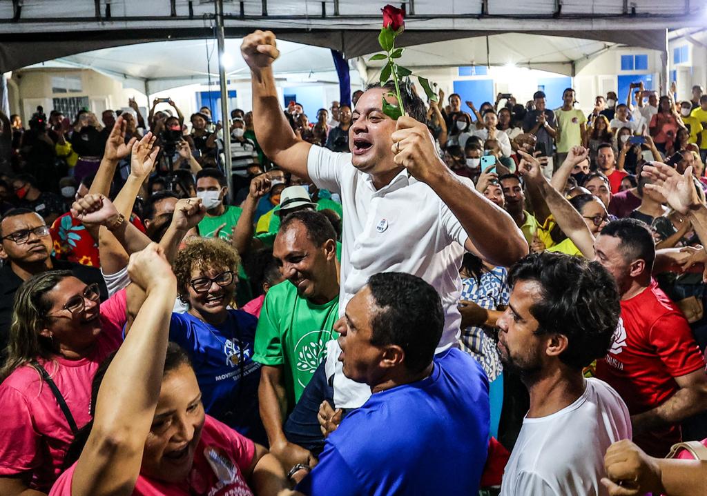 O senador Weverton chegou à sede do partido ao lado da sua esposa Samya Bernades. Um dos momentos mais emocionantes foi quando a cantora Anastácia Lia, filha de João Francisco, militante histórico do partido, cantou Oração Latina, música de César Teixeira e hino da militância do PDT.
