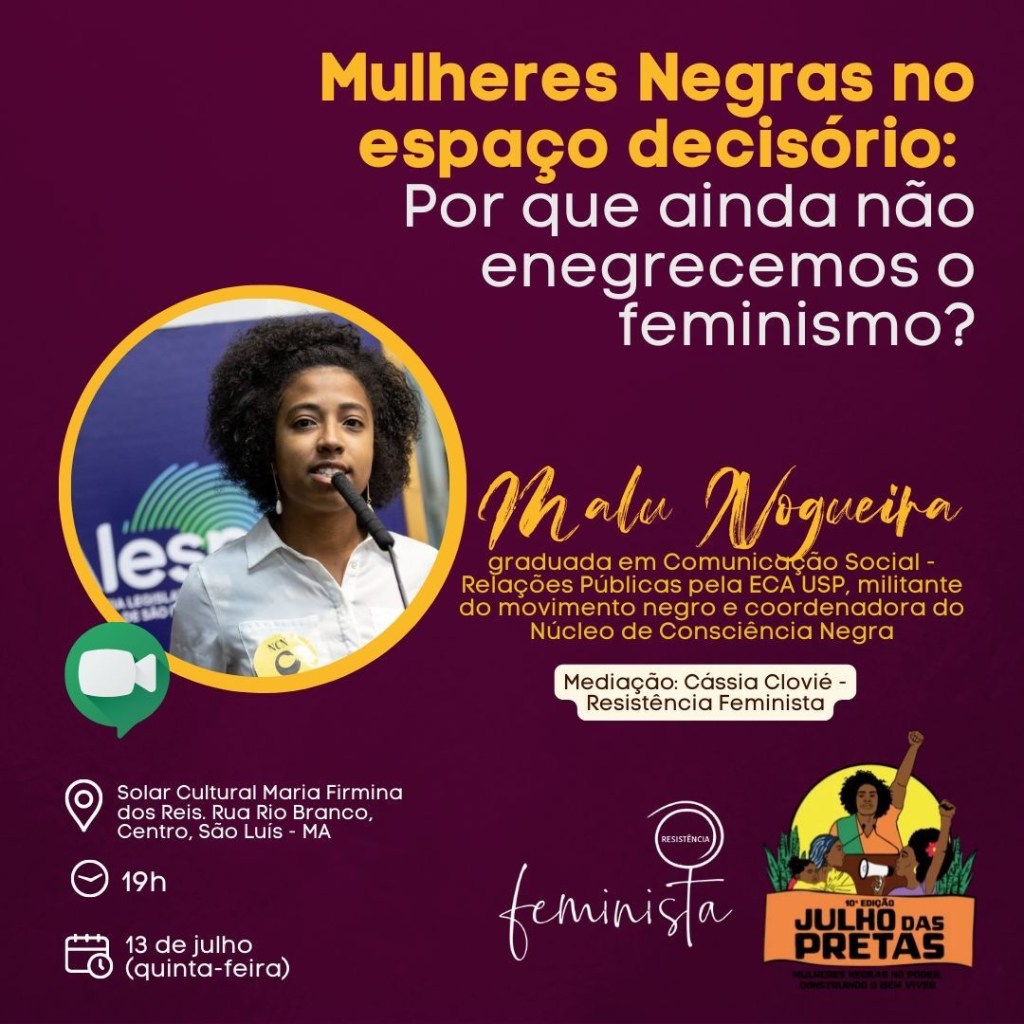 JULHO DAS PRETAS | Uma série de atividades dos movimentos feministas e negro marcam esse mês dedicado às lutas e resistências das mulheres negras do Maranhão, Nordeste e do Brasil.