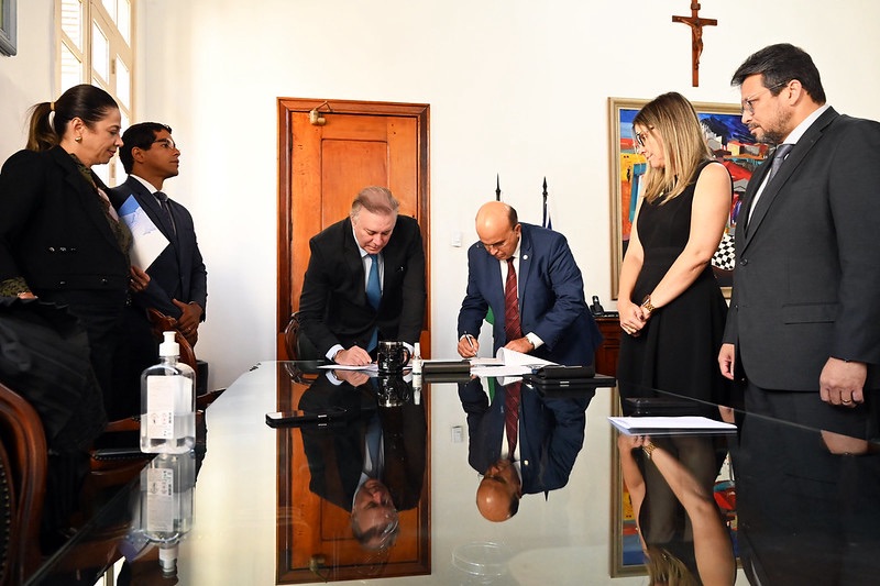 A assinatura do Edital Conjunto TJMA/PGE-MA, nº 01, de 17 de julho de 2024 foi realizada nesta quarta-feira (17/7), no Gabinete da Presidência, entre o presidente do Tribunal de Justiça do Maranhão, desembargador Froz Sobrinho e o procurador-geral do Estado, Valdênio Nogueira Caminha.