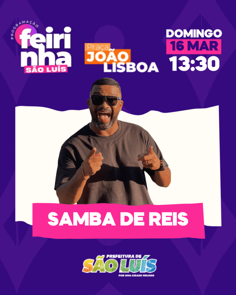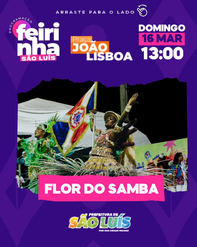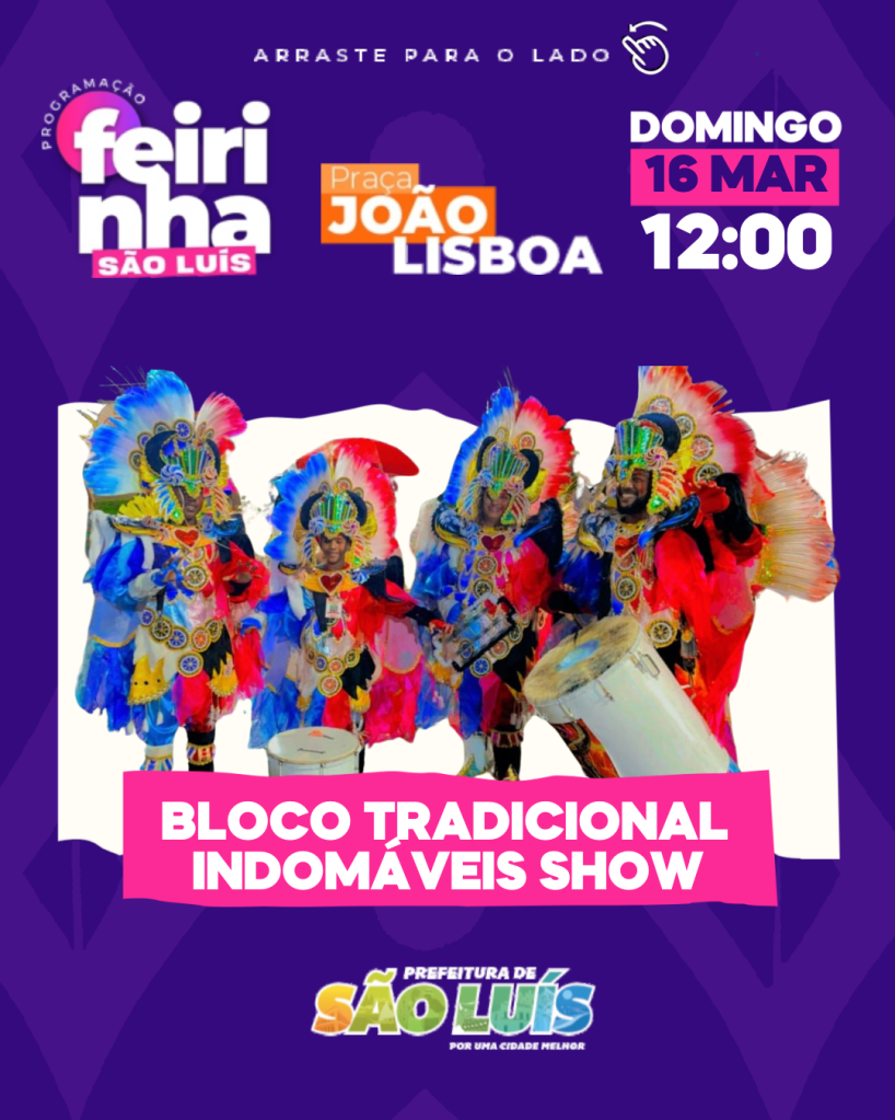 Quem disse que o carnaval terminou? Quem for a Feirinha São Luís, neste domingo vai conferir de perto as apresentações da Flor do Samba, do Bloco Tradicional Indomáveis Show (Grupo A), Vinagreira Show (Grupo B) e um super show com o cantor Marlon Reis.