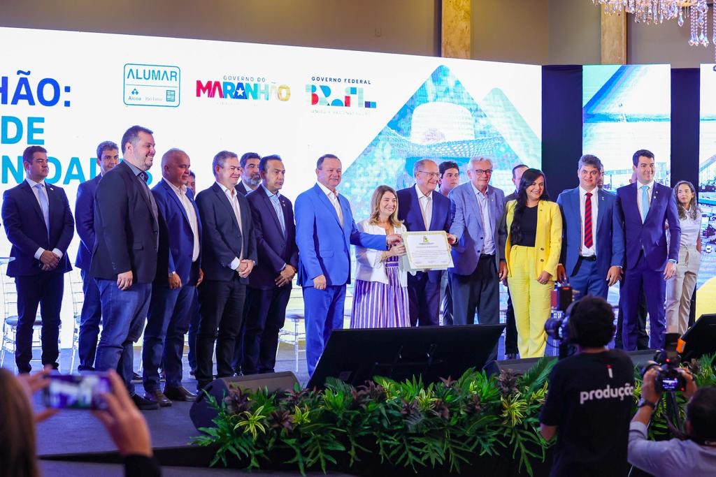 A Assembleia Legislativa do Maranhão homenageou o vice-presidente da República e ministro do Desenvolvimento, Indústria, Comércio e Serviços, Geraldo Alckmin, com o Título de Cidadão Maranhense. A comenda, proposta pela presidente da Alema, deputada Iracema Vale (PSB), foi entregue durante o evento que celebrou o marco de investimentos e modernização da produção de alumínio no estado, em São Luís.