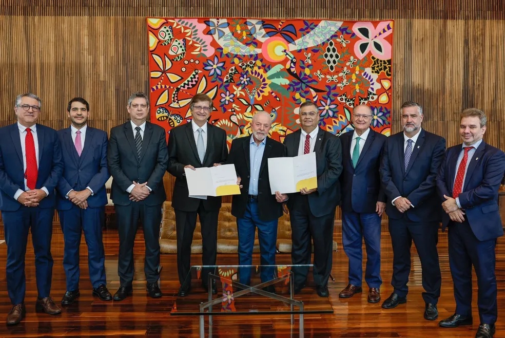 Dino, Gonet e os ministros Márcio Macedo (Secretaria-Geral), Jorge Messias (Advocacia-Geral da União), Alexandre Padilha (Relações Institucionais), Paulo Pimenta (Secretaria de Comunicação Social) e Geraldo Alckmin (Indústria) estiveram no Alvorada pela manhã, quando Lula assinou os ofícios enviados ao Senado.