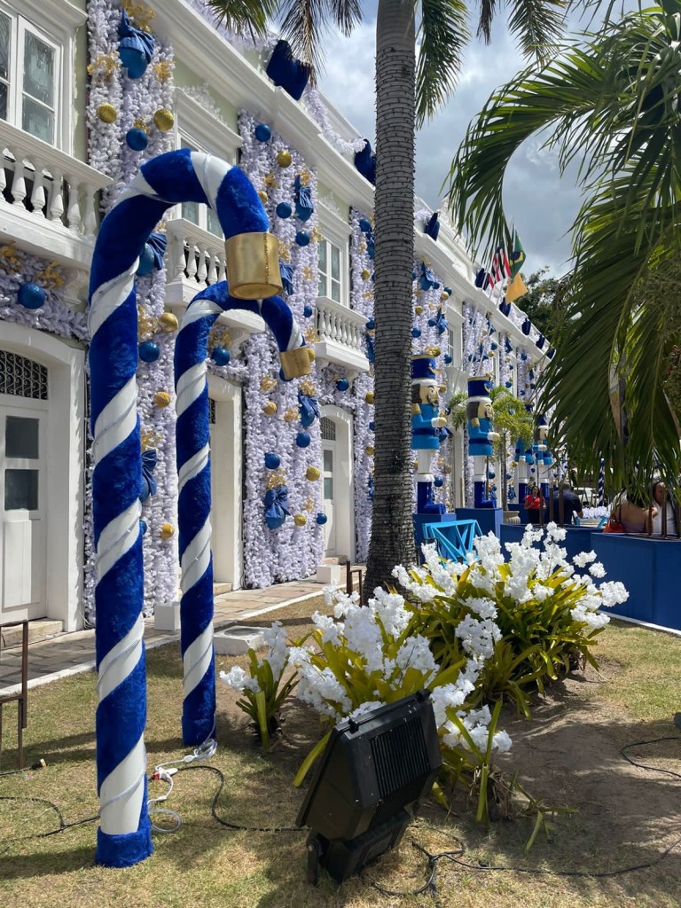 Palácio de Lá Ravardiére com a decoração natalina de 2023. Foto: Orlando Amorim.
