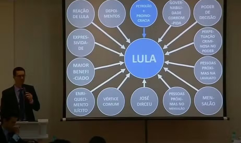 — Aí a gente faz a entrevista coletiva do Lula, (mas) a gente já tinha feito em entrevistas anteriores, usando lá apresentações, PowerPoints (sic*), a gente já tinha feito várias anteriores, só que não tinha tido aquela repercussão. (…) Foi um erro de cálculo nosso… A gente achou que fazendo igual às outras vezes a gente ia ter um resultado igual — disse o ex-procurador.