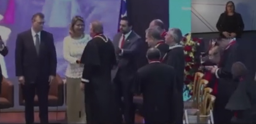 O novo presidente do judiciário maranhense, o desembargador Froz Sobrinho, simplesmente não cumprimentou, Saraiva deixando-o no vácuo. (veja no vídeo abaixo).