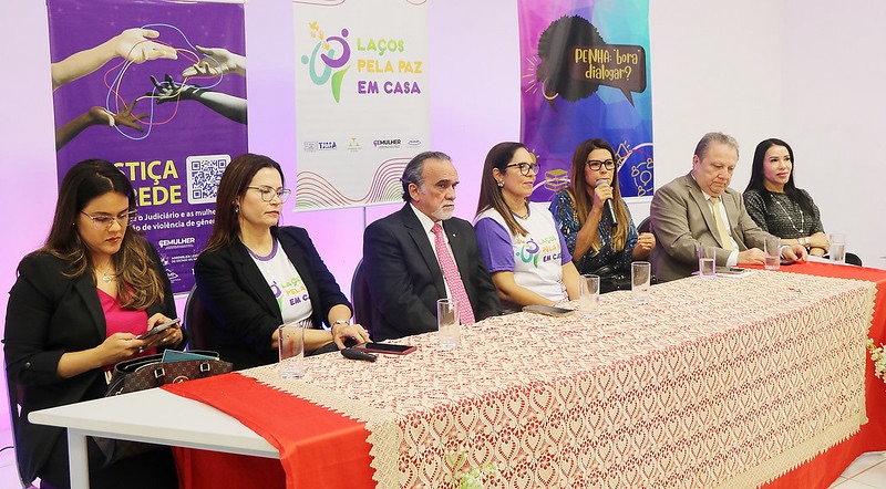 O presidente da Cemulher, desembargador Cleones Cunha enfatizou em sua fala a importância de um trabalho orquestrado em rede no combate à violência contra mulher. “A Justiça só acontece se nós estivermos todos juntos, todo grupo de acordo, todas as culturas. A juíza, os juízes, promotores(as), a patrulha Maria da Penha, as delegadas, as assistentes sociais, todo grupo de trabalho. É por isso que a Justiça trata da violência doméstica em rede”, pontuou.